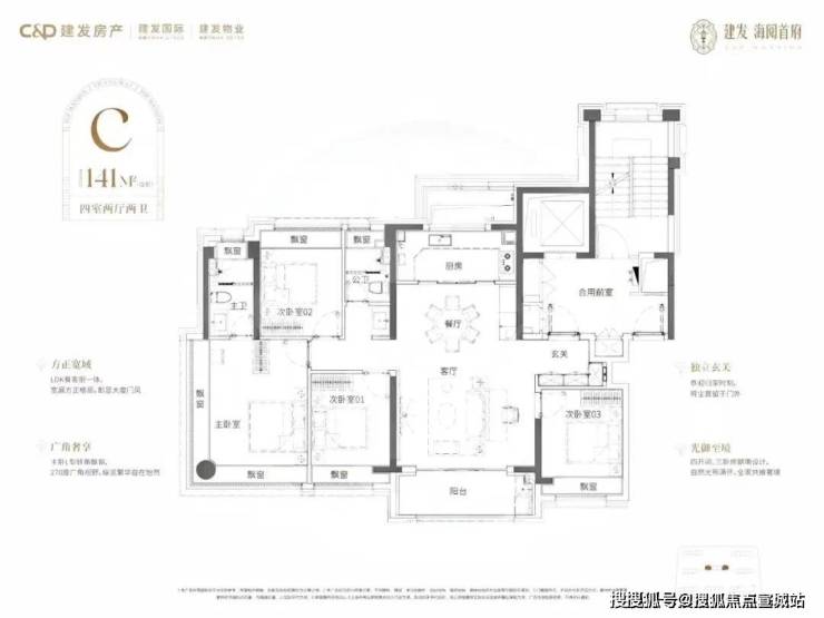 建面约141㎡4房2卫户型图: