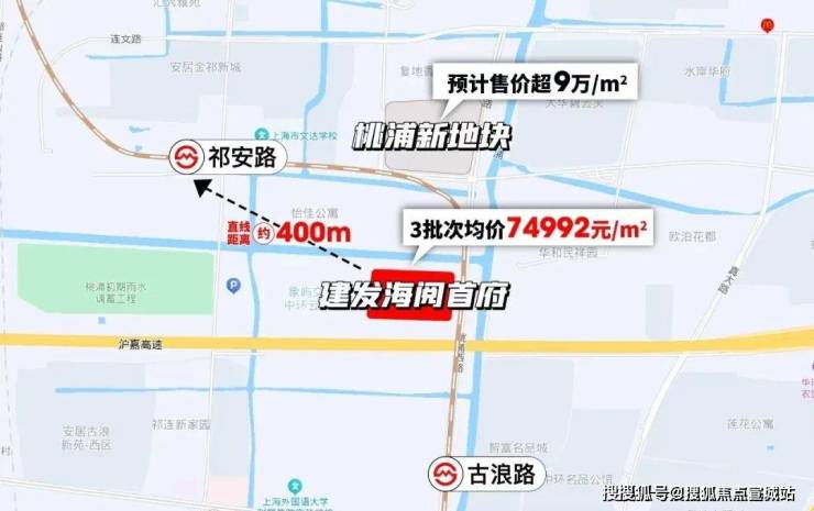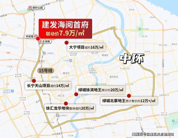 而桃浦版块,建发海阅首府,直线距中环仅约1.4KM,新房均价才约8.3/㎡;