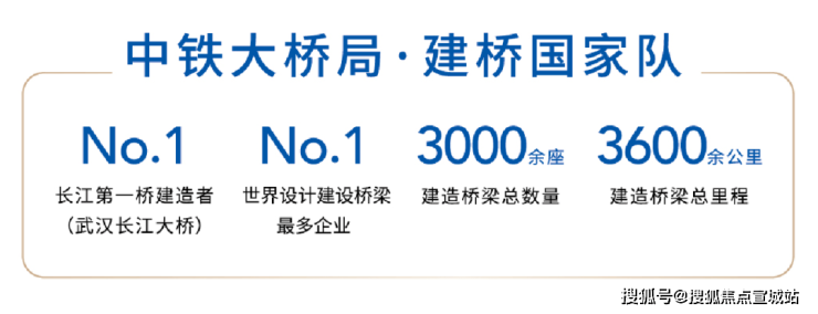 中铁大桥局集团前身为1953年修建万里长江第一桥“武汉长江大桥”经政务院批准成立的铁道部大桥局,是中国桥梁事业的领军者,是世界上设计桥梁最多的企业,中国“一带一路”走向世界的“建桥国家队”。在世界范围内建造桥梁总数超过3000 座,建造桥梁总里程超过3600余公里,建桥技术国际领先。近70年来,公司曾先后参与建设了杭州湾跨海大桥、东海大桥、港珠澳大桥、武汉长江大桥、南京长江大桥等一系列知名桥梁,一直引领着中国桥梁事业发展方向,以建桥的心志去建造住宅。