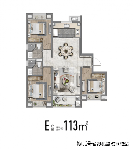 建筑面积约113㎡户型样板实景图