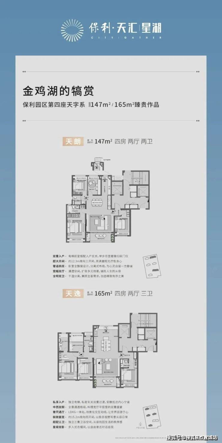 户型面积:4室2厅2卫147㎡;4室2厅3卫165㎡。