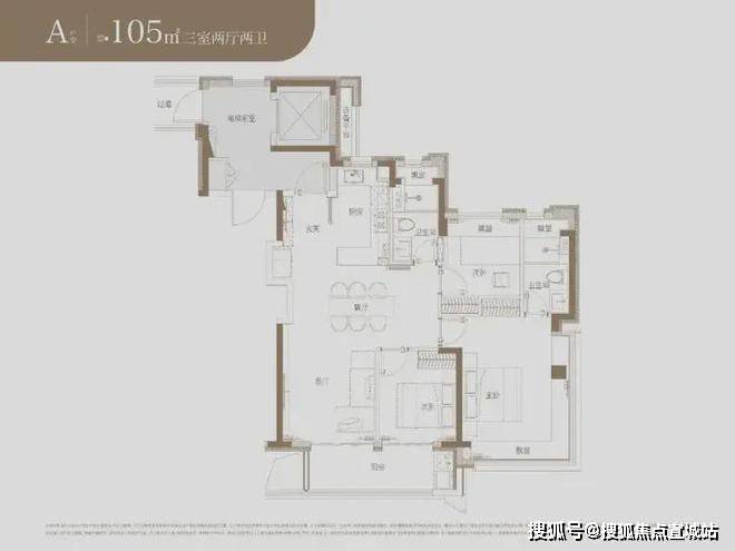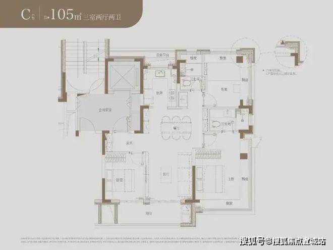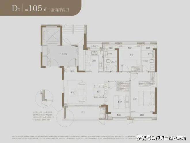 建筑面积约105㎡3房2厅2卫,约128-143㎡4房2厅2卫,更是将居住舒适度和细节有深入的考究。