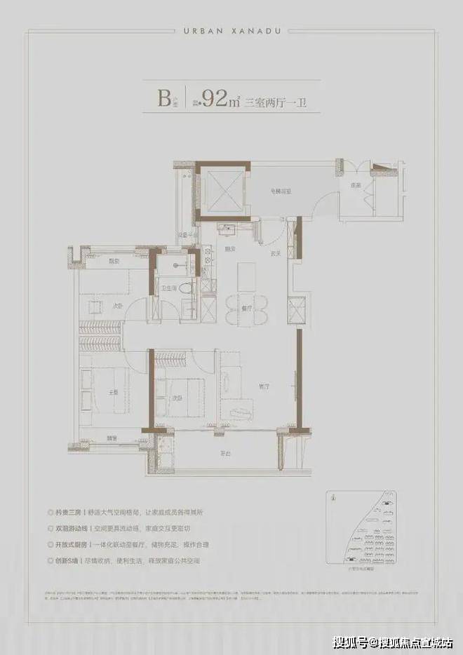 建筑面积约92㎡3房,在本来的爆款户型上升级,是本次的高性价比户型。