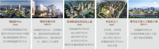 梅陇华鑫天地:上海首个镇级工业园区转型城市更新落地项目。规划有研发花园总部、高标商务中心、园区商业中心、园区会议中心、园区人才公寓、社区邻里中心、研发标准办公,预计2023年一期建成。