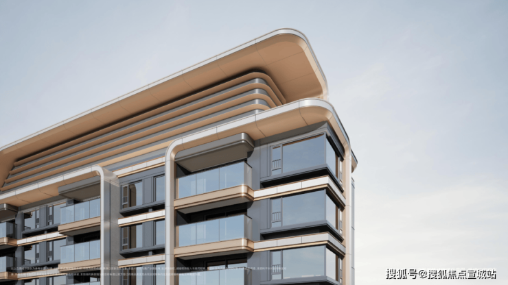 项目采用鎏金塔冠造型,灵感来源于国际邮轮港的曲线,流光美学的外立面,既有辨识度又有质感,是未来业主身份的象征。阳光倾泻而下,在不同光影与环境下,让家成为一件艺术品。
