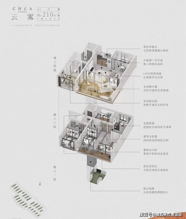 ☝中海·月陇云岚210㎡「云雾」室内空间示意图