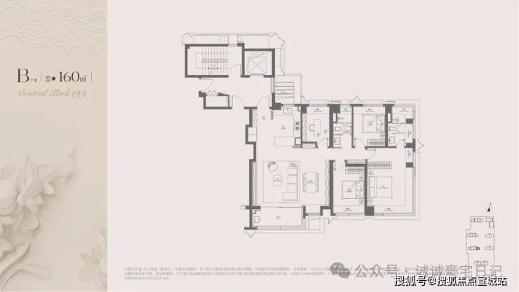 128㎡户型:约270°采光面,无柱转角飘窗,赠送6个飘窗空间。