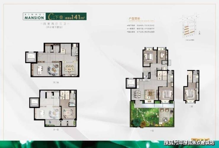 下叠建面约141平米四室三卫
