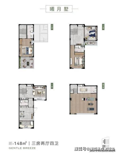 合院别墅:建面约148-175平方米,总高地上三层,地下一层。一期70套(148平方米37套,175平方米33套);二期127套(148平方米68套,175平方米59套);三期140套(148平方米70套,175平方米70套),毛坯交付,均价29000元/平方米起,总价区间400-900万。