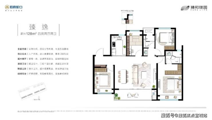 户型配置也非常纯粹,就建面约128/143㎡2个户型,全是大4房,装修交付。