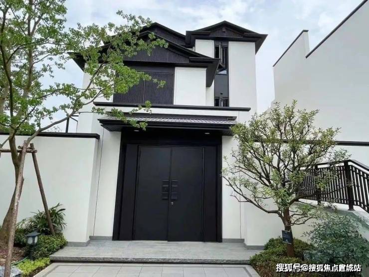 这81套低密院落,全部做成了现代中式风格,在保留悬山顶、大披檐等传统元素的基础上,外立面大大提高了窗墙比,深色木饰结合大块的玻璃,与环境底色融洽成了一幅水墨画。
