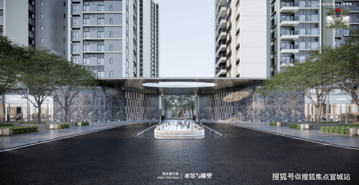 酒店式入口,气派入户大门,三重归家景观,大气城市界面,营造庄重仪式感