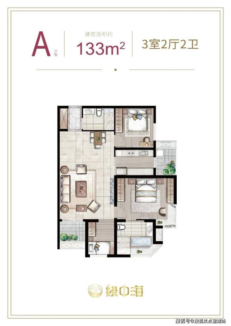户型特色:户型设计注重私密性与功能性,动静分区合理,采光通风优良。其中,133㎡三房一梯一户,4.9 米大横厅 + 270° 转角飘窗,双套房设计,适合改善型家庭。