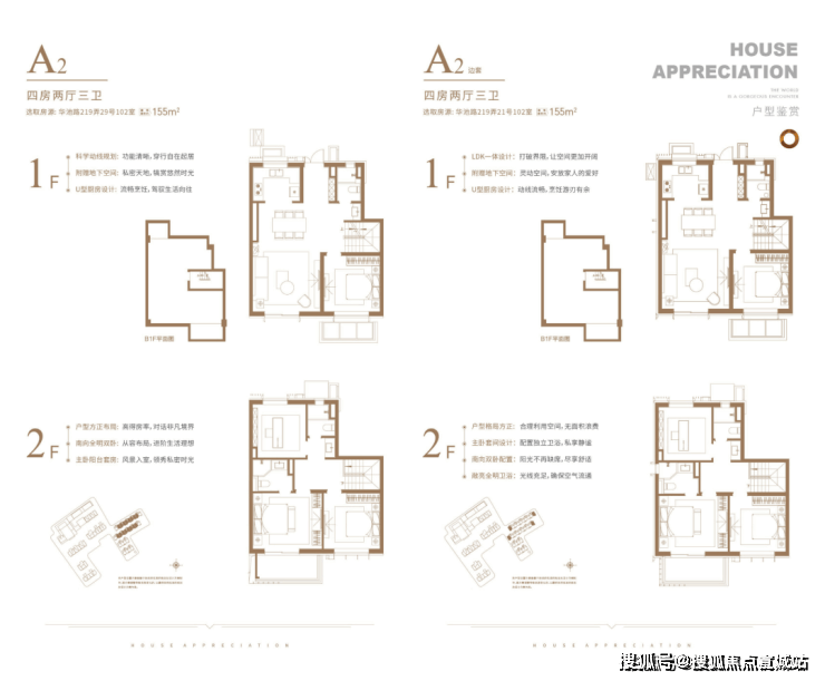上叠户型,共有三个主力户型,建面约155㎡、151㎡