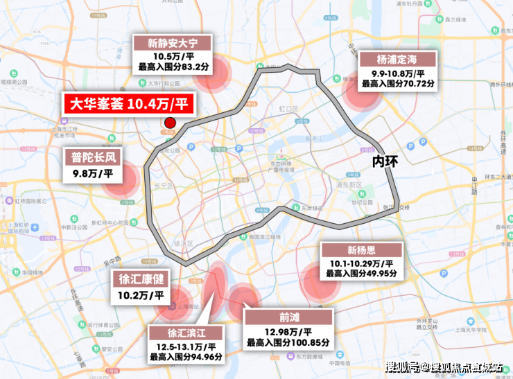 房价方面,放眼上海整个内中环,内环内新房单价动辄12W+、13W+。就连内中环的一些板块,单价也达到了12W。