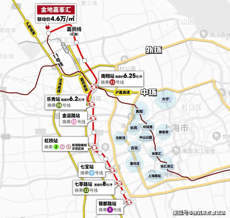 金地嘉峯汇距11号线仅500米,离在建的嘉闵线约200米,8站直通大虹桥,是当下400万级中少见的双轨交盘。