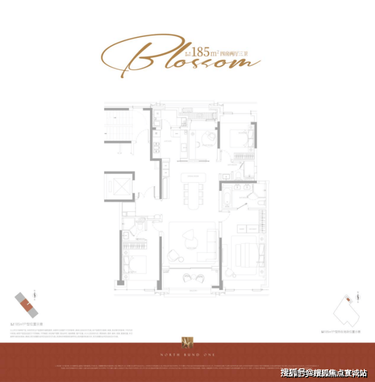 该户型均为边套,拥有更私密的居住体验和客餐厅阳台连续17米的无遮转角景观面,户型尺度更为阔绰,客厅采用转角采光,最大化引入景观;主卧套房尺度奢华。因为建筑立面正面北外滩世界会客厅,东西边套阳台可直观欣赏北外滩的未来城景,东边套部分房源甚至能将陆家嘴“三件套”框入每日窗景;西边套依旧视野通透,南北无遮挡,西向有下午的采光优势,高区房源完全任何遮挡,视野价值巨大。它代表了项目对高端居住体验和稀缺景观价值的顶格兑现。