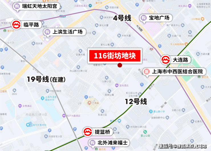 交通方面,项目位于上海内环内,距离轨交4号线大连路直线距离约250米, 周边4、12以及在建19号线三轨交汇, 交通便捷。