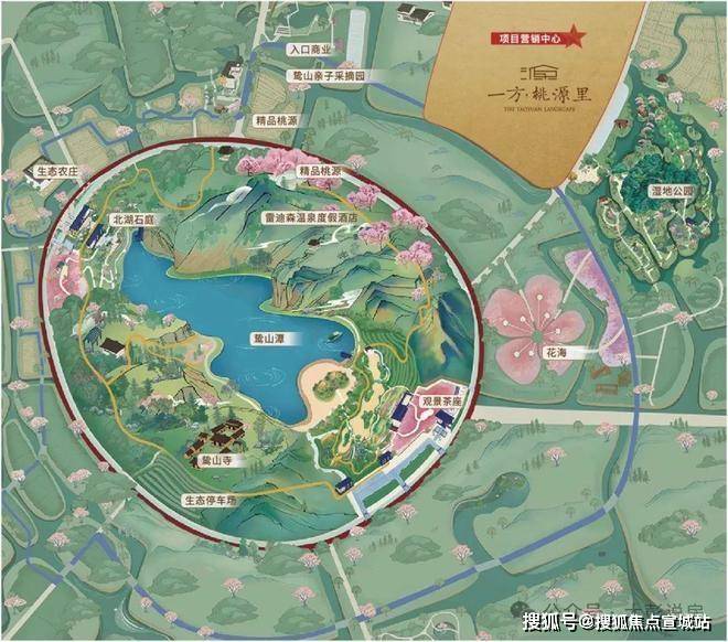 鸷山桃花源是由中新集团倾耗资40亿,耗时7年倾力打造的2400亩田园山水小镇,拥有湿地公园、农田花海、枯山水景、温泉酒店等度假设施,当之无愧现代桃花源