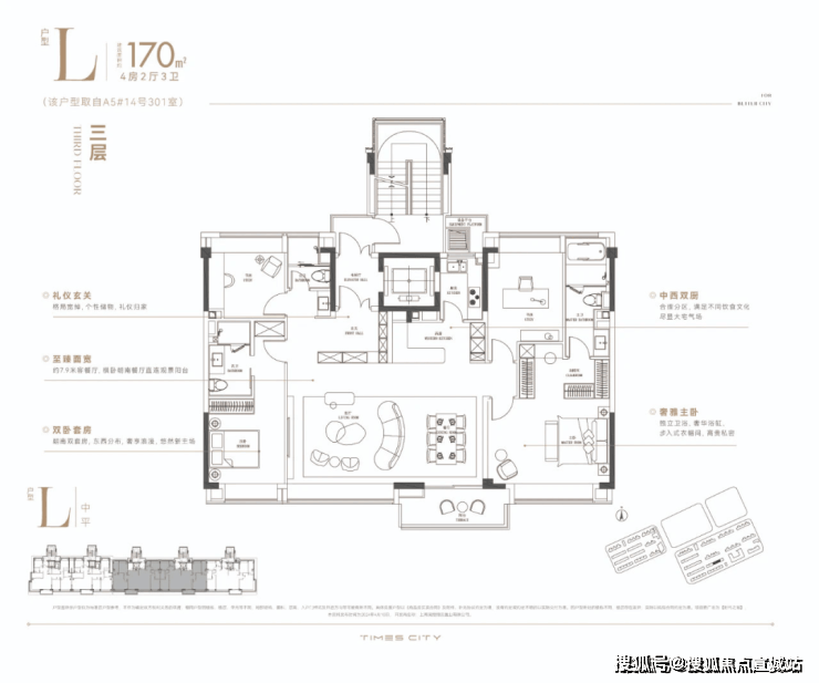 华润置地时代之城高层产品将百平上下的改善户型做出了轻奢级的居住体验,把约133㎡的改善四房做出了豪宅的尺度感。