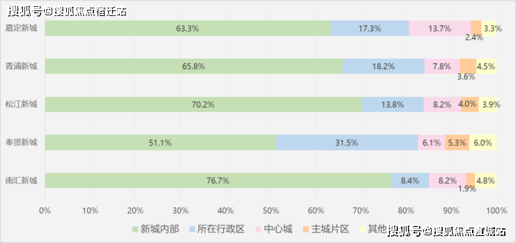 而在五大新城中,松江新城的内部就业比重高达70.2%(数据来源:规划上海SUPDRI公众号),在五大新城中处于领先地位。