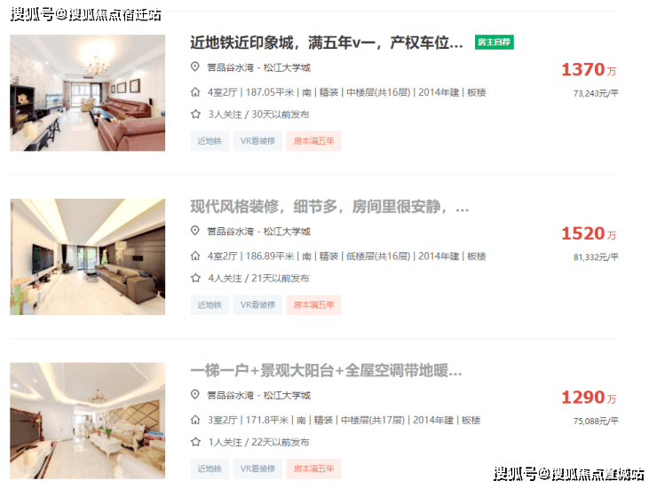 10年前打造的中企誉品·谷水湾,在2013年销售面积、金额均位于松江区域前三甲,荣膺2013年上海市白玉兰最佳建筑奖,被誉为松江的汤臣一品。目前,其成交价格依然站稳在7万/㎡左右!