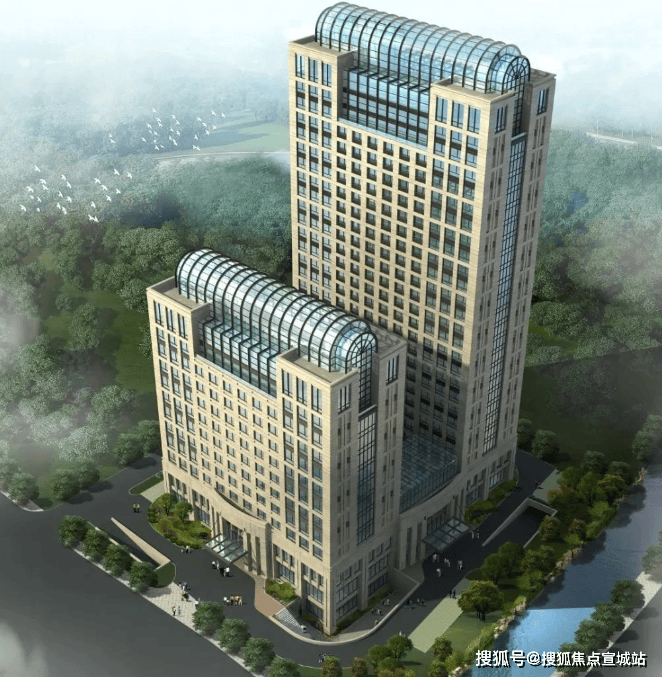 建筑风格:采用经典的ARTDECO风格,立面设计稳重内敛且典雅,外墙采用干挂石材加玻璃幕墙,品质感十足,屋顶层高4.7米的金属架构造型优雅,具有标识性。