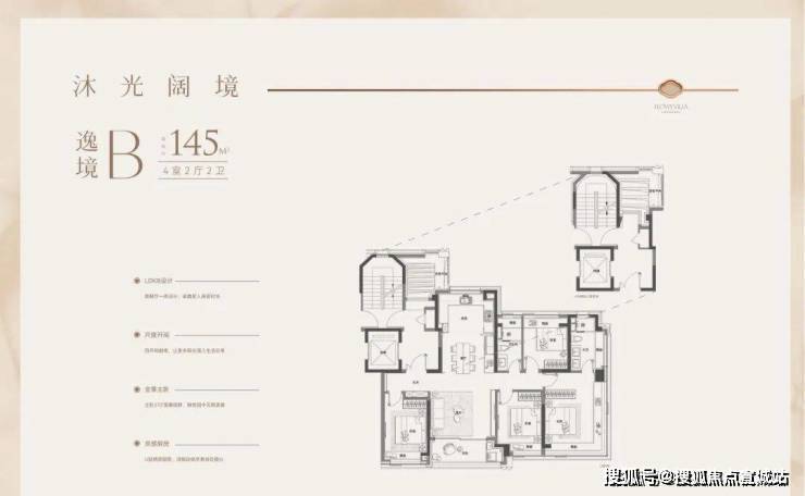 户型特点:4开间朝南,LDK一体化设计,南北通透。客厅面宽达4.3米,外接4.8米长阳台,采光通风俱佳。主卧带270°转角飘窗,主卫也有飘窗赠送。全屋飘窗设计,独立电梯厅,私密性与尊享感强。