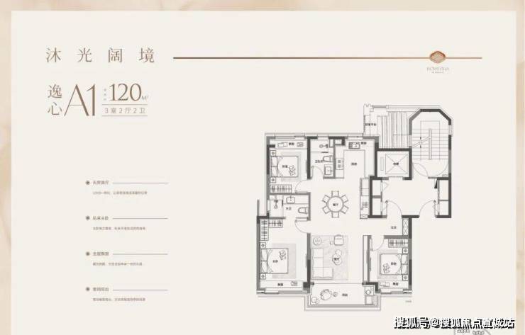 功能优势:动静分区合理,主卧套房设计,私密性较好。适合改善型家庭,兼顾实用与舒适。