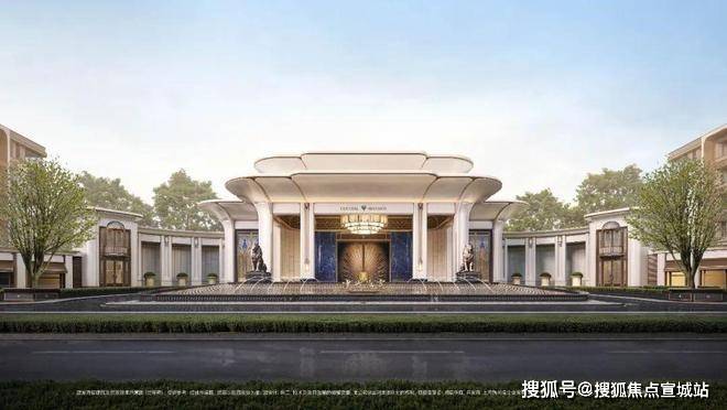 「玉兰门庭」摩登飘逸,环抱式落客前场,大师定制非遗掐丝珐琅门钹,流转温润光华,敬呈归家尊崇礼序,自此启幕生活的华贵序章。