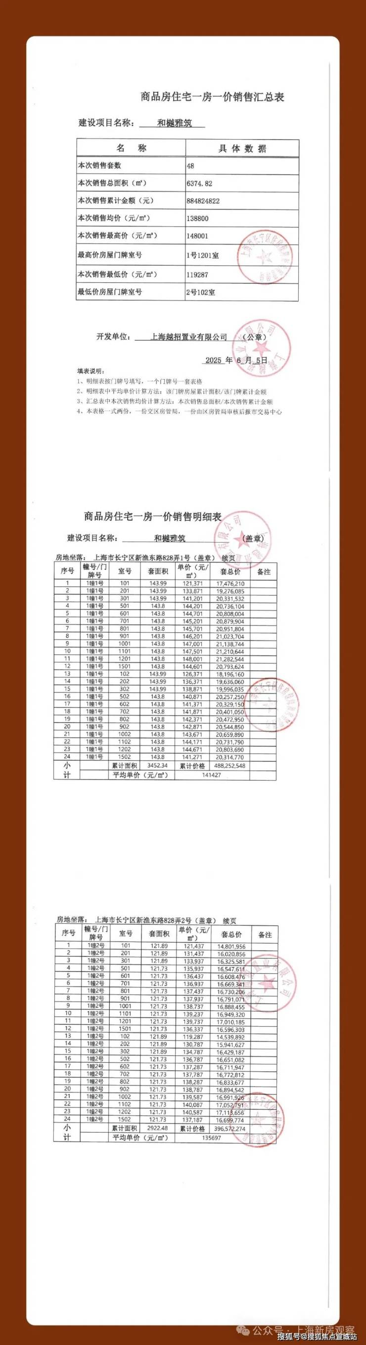 上期一房一价表如下: