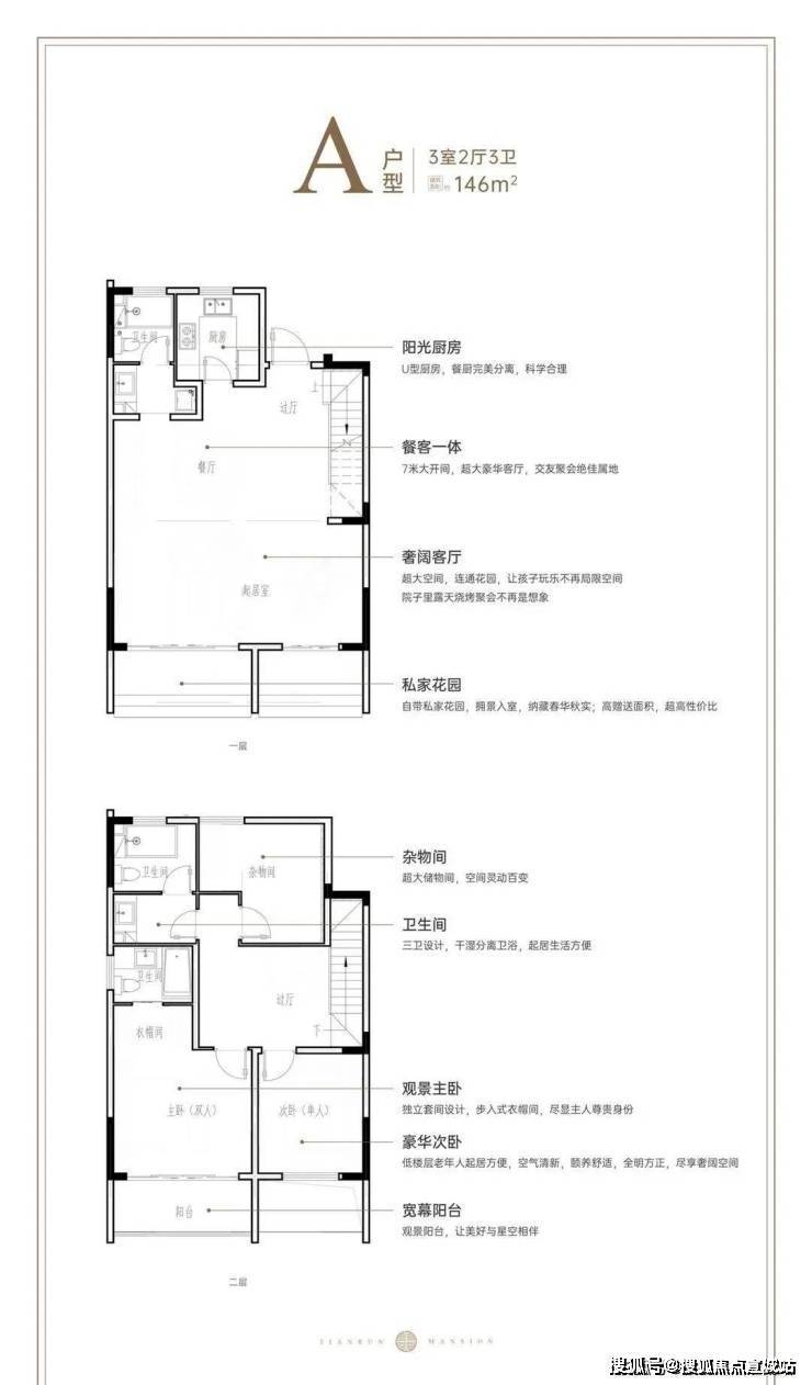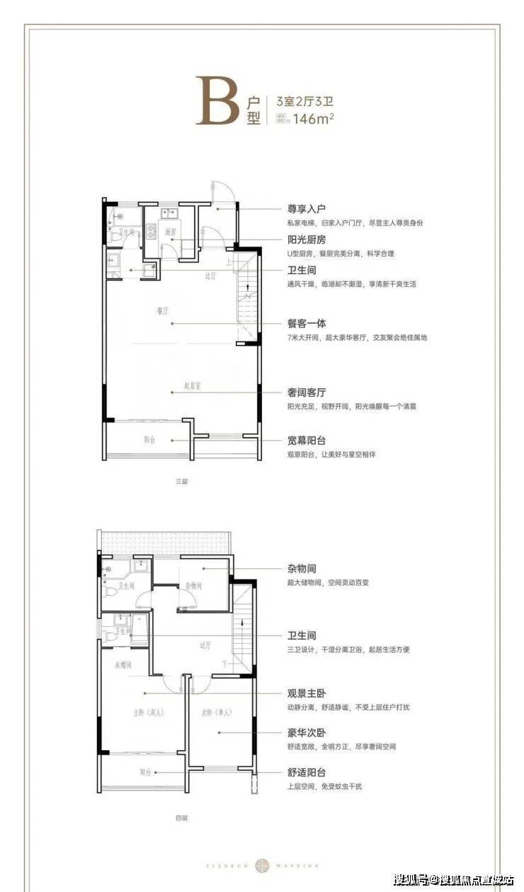 叠墅(146-147㎡):分上叠(三叠四层,带电梯、露台)和下叠(赠南北双庭院20-80㎡)
