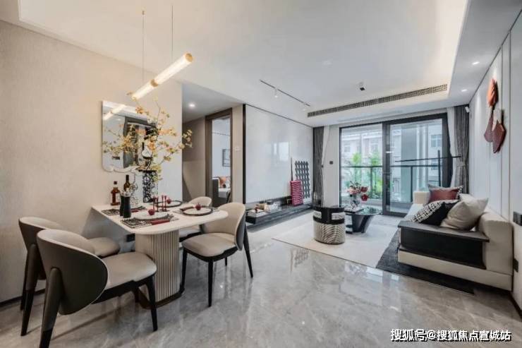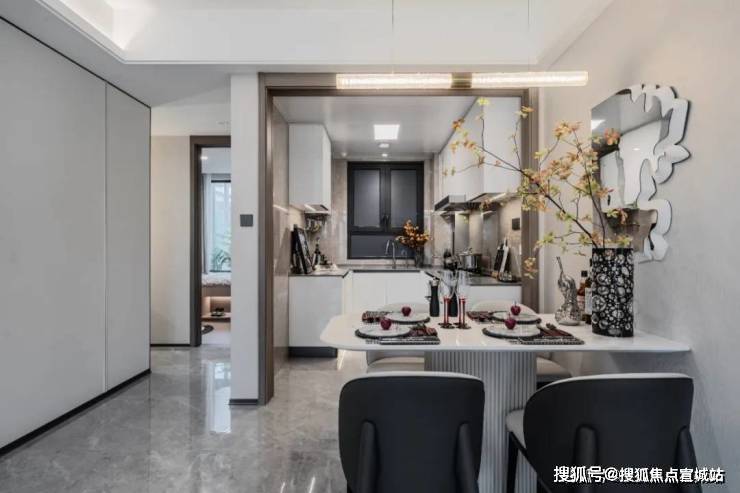 客餐厅的颜值超高,地砖、墙布都在交付标准里,整体风格更为统一,将好看+好用发挥到了极致!