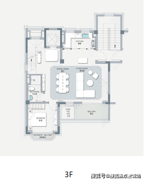 项目通过一楼家庭庭院,二楼星空露台,三楼罗密欧阳台,复原经典的三段式设计规制,还原出武康路罗密欧阳台的经典邬达克式摩登场景。