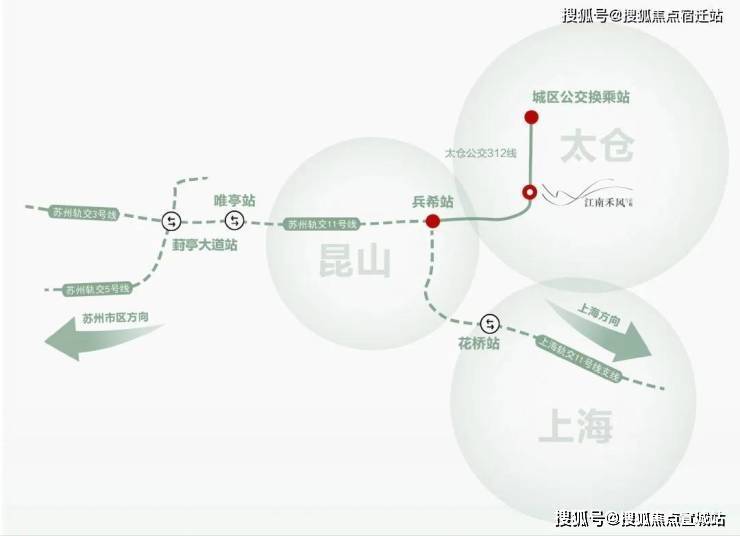 项目邻靠前进路、胜泾路、烟沪线(204国道),便捷接入两高(京沪/沈海高速),同频太仓“5+1”轨道交通网络(建设中),公交路线312路自江南禾风站,向西链接苏州轨交11号线,向东至科教新城客运站换乘60路,102路,112路,128路,以多维立体交通便捷出行长三角。(资料来源于太仓发布官微)