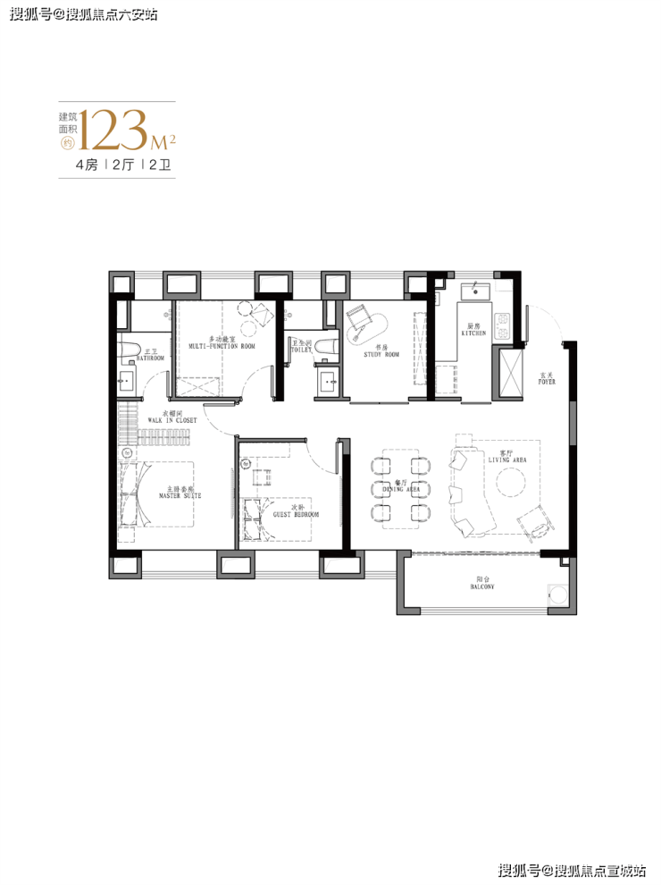 7、产品:103㎡、107㎡的三房两厅两卫及123㎡、129㎡的四房两厅两卫。