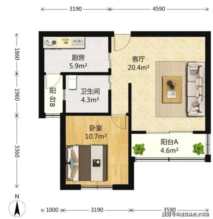 一房59.34平