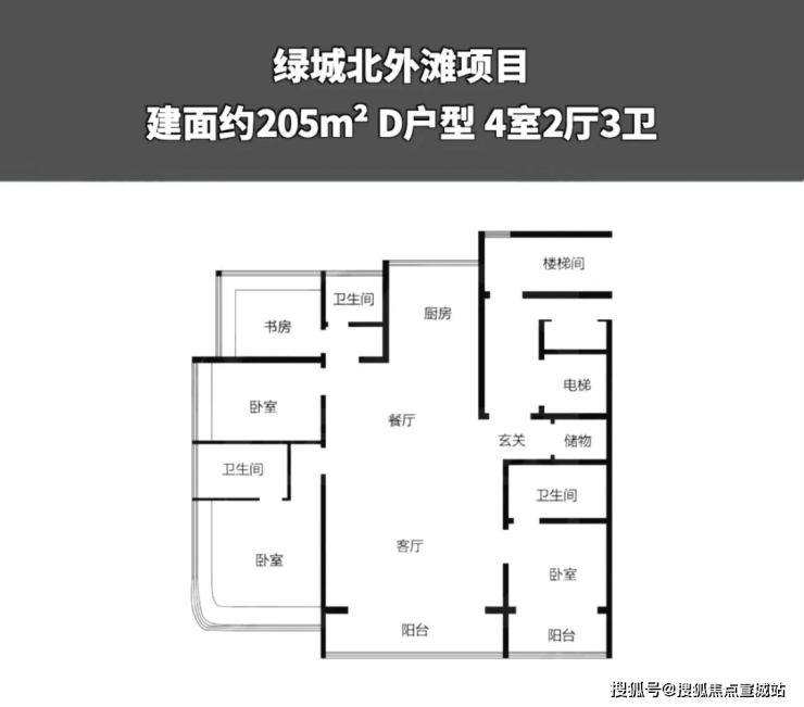 207㎡四房两厅三卫:大面宽短进深,全明通透,客厅连接全景阳台,中西双厨,适配高端改善与社交需求