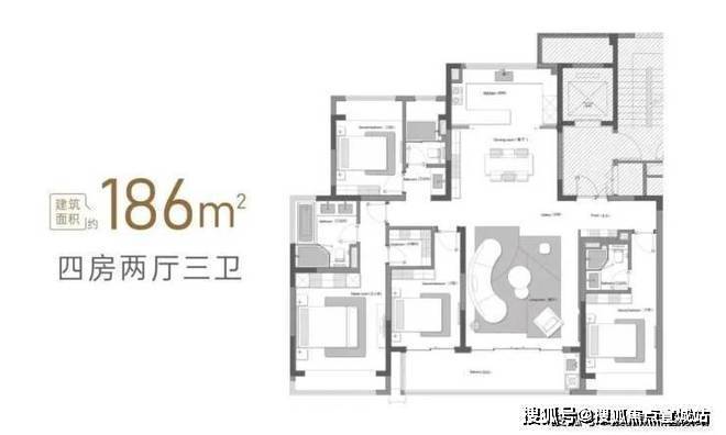 建面约186㎡四房两厅三卫