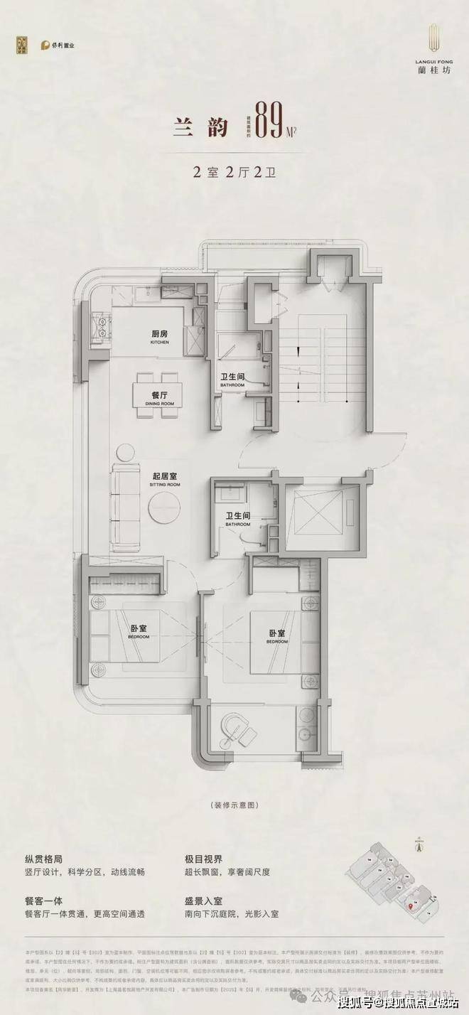 洋房户型:建面约 89-180 平方米,主力户型为 3 室 2 厅 2 卫或 4 室 2 厅 2 卫,户型方正通透,三开间朝南,LDKB 一体化空间设计。