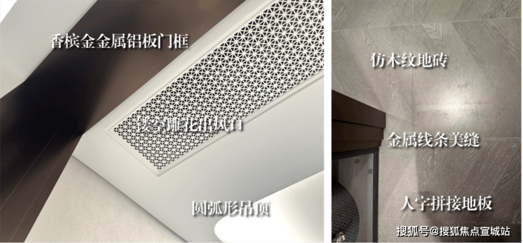 还打造了海派雕花出风口、卧室地面鱼骨拼接、卫生间地面复古拼花、香槟金金属铝板门框、金属踢脚线等元素,整个海派美学居住空间精致有腔调~
