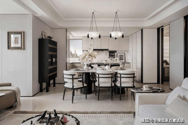 超大尺度的中西岛台,既符合中式烹饪的实用逻辑(预留足够操作台面),又能承载西式社交(朋友小聚时在岛台品酒聊天),让厨房从“单一做饭空间”变成“生活场景发生器”。