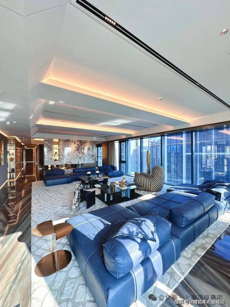 装修上,将时尚与奢华巧妙融入每个角落,所有的窗帘、移门、提升窗、灯光、空调、新风、地暖都可以通过手机远程控制。