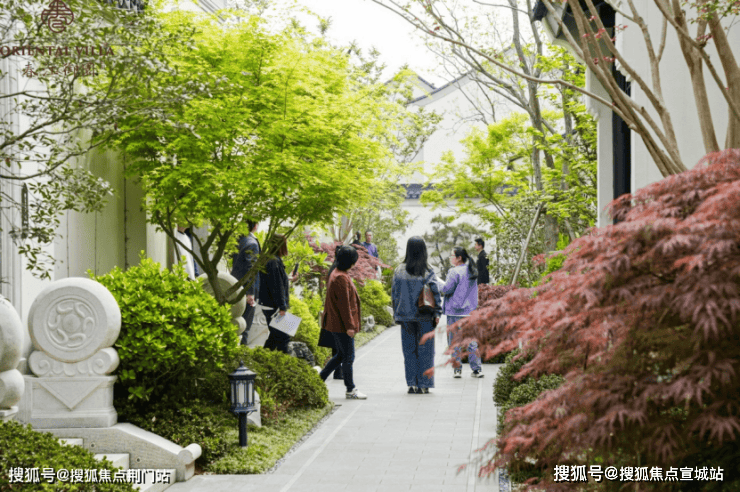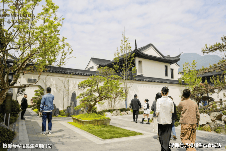 门窗、影壁、屋顶等经典中式型材与凯撒灰石材等创新中式型材巧妙融合,使得建筑整体仿若高冠博带的雅仕,踏风而来、明朗雅逸。枫、松、红梅、鸿运果等颇具中式特色的盆景,虚实相映,沿途比比皆是,生活鉴赏家们感受着古今人居美学的相融相生,触摸着由真材实料勾勒而成的建筑中,所蕴含着的匠心之美。