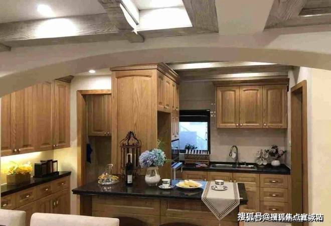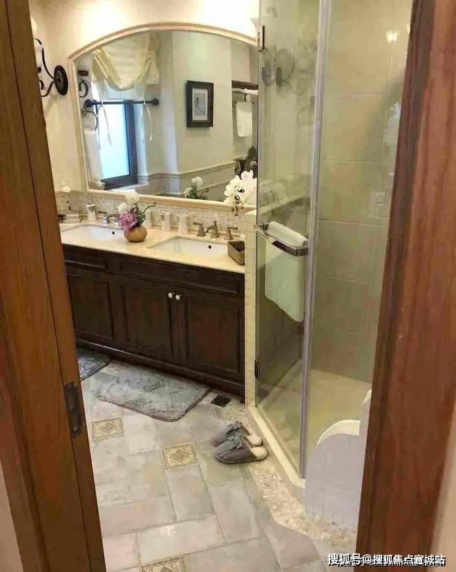 外立面采用文化石和手工打磨的stucco艺术涂料,烟囱、山花、铁艺栏杆、木质葡萄架,配合高低错落的彩瓦屋顶,空间层次优美。
