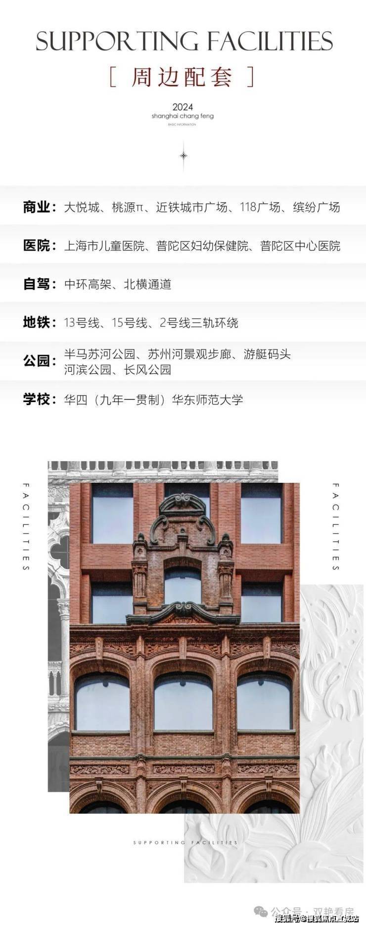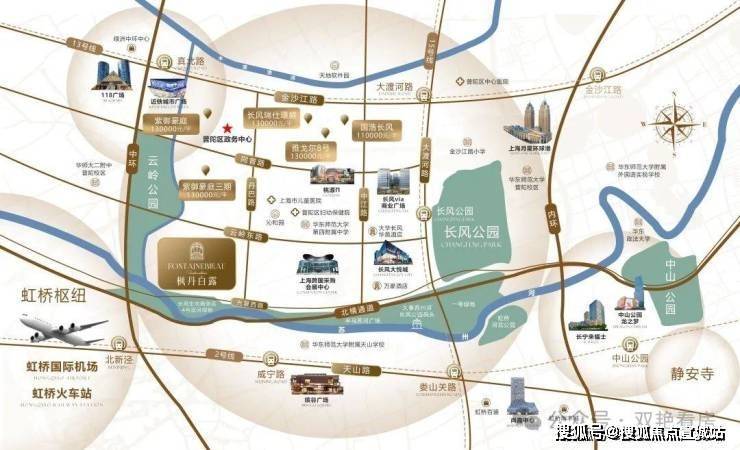 周边配套:2 号线北新泾站、13 号线真北路站、15 号线长风公园站三轨环绕,周边有近铁城市广场、巴黎春天等商业体,毗邻上海市儿童医院、普陀区妇幼保健院等医疗机构,涵盖华四(九年一贯制)、华东师范大学等教育资源,紧邻半马苏河公园、苏州河景观步道、长风公园。