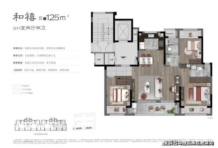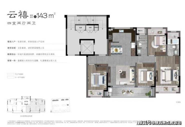 低密设计:楼间距约40米,得房率超82%,户型建面124-159㎡,全四房设计,南向阳台仅计一半面积,飘窗及设备平台不计入产权面积