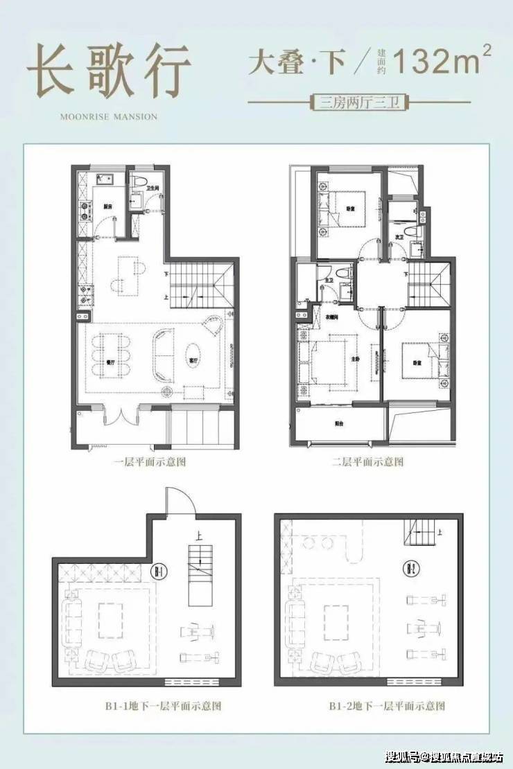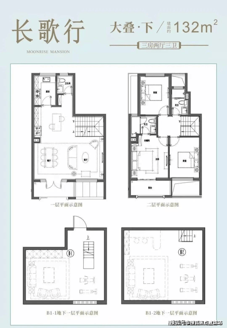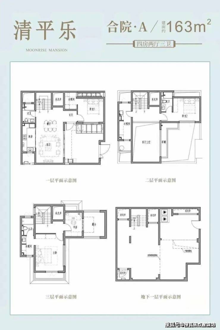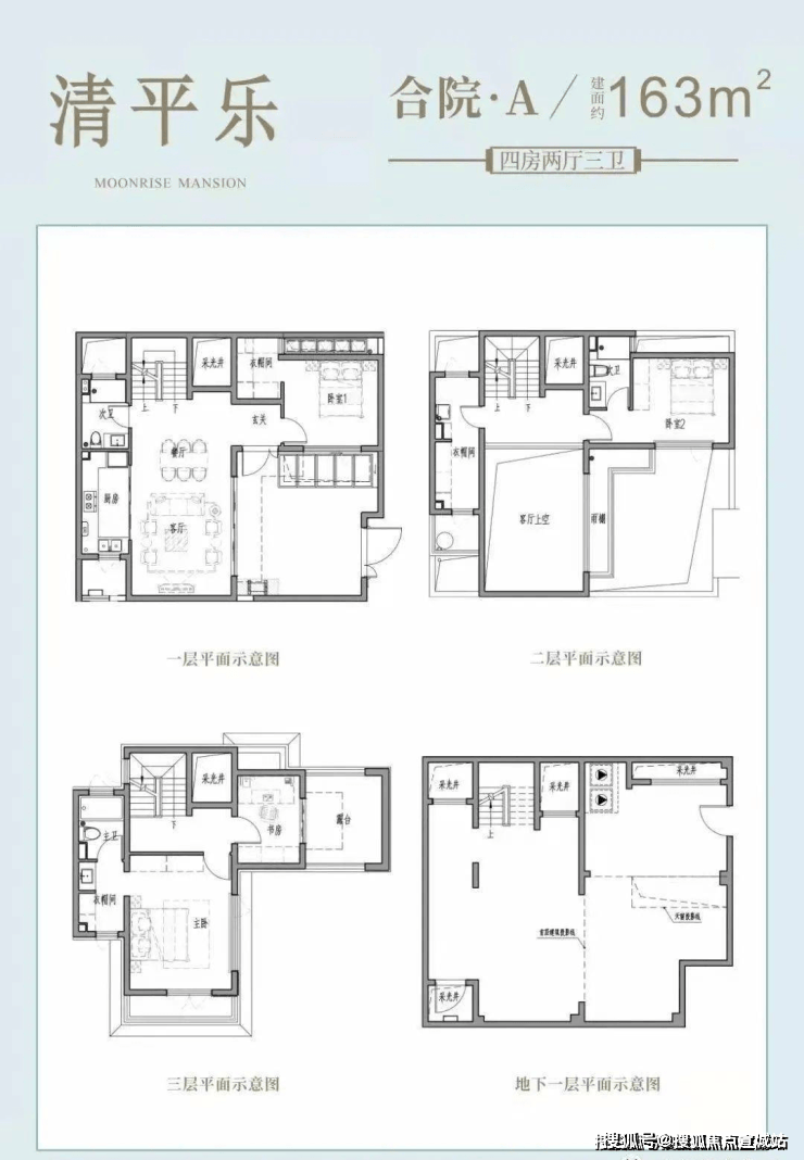 合院(毛坯):附带40-100㎡花园&地下室(层高5.3m),三楼有近15㎡露台。