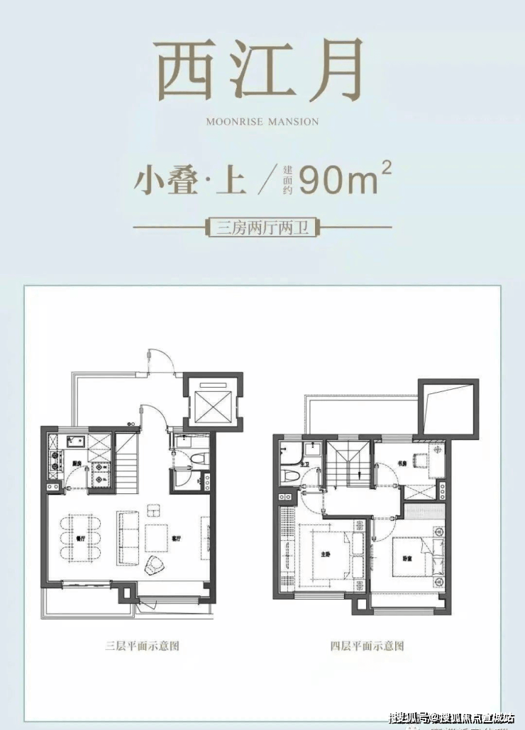 上叠(装修):一梯两户双开门设计,近20㎡独立电梯厅,每层带有5-10㎡露台,且顶楼附带30㎡灵动空间,底层面宽6+米,视野开阔,采光通透。