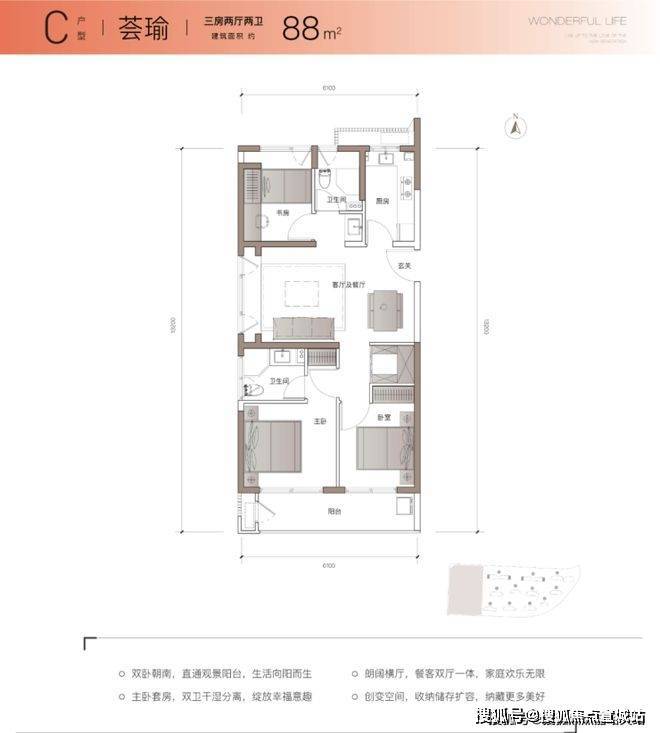 项目主推建面约89㎡3房,首开均价约3.36万/㎡